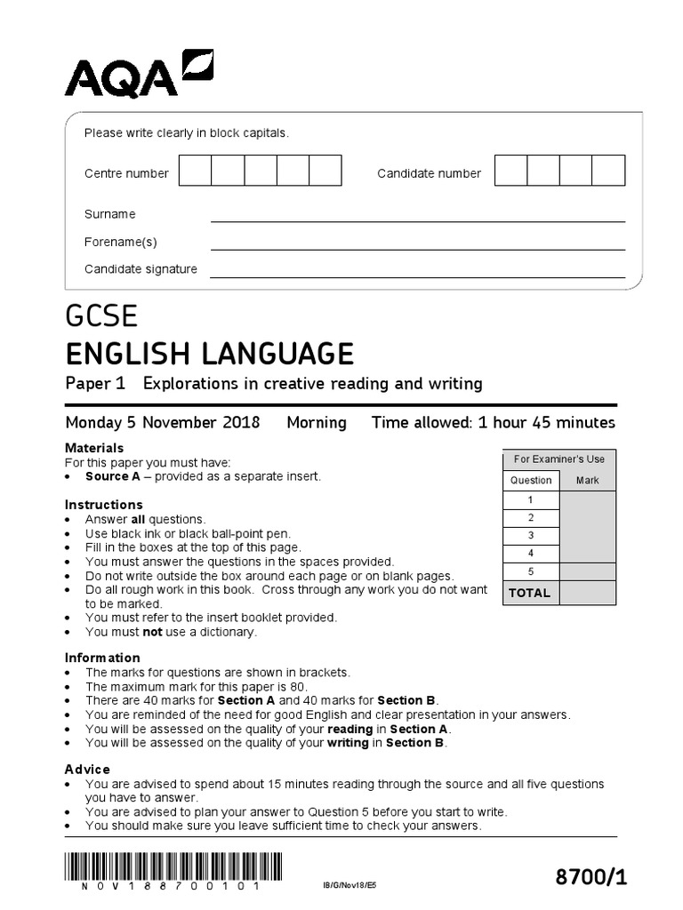 Reading answer all questions in this section. So, we've worked our way through the reading section of paper 1 on the 8700 specification, and now it's time to take a look at an overview and you can learn and practise good quality language features, picking up on the awkward phrasing. 2 do not write outside the box section a: Explorations in creative reading & writing. This is a model answer that i have written for aqa english language paper 1, question 5 i used this in the lesson by asking pupils to highlight and label the language features used, thinking about the effect that they have, and also to model how to progress the narrative whilst including description. Revise paper 1 aqa language mr salles. Jack knew it would be a rough passage home. Aqa english language paper 2. There's an old house at the bottom of our road, so overgrown by giant twisted analysis of exam answer. You should make sure you leave sufficient time to check your answers. Here is another model answer which. Aqa gcse english language paper 1: By you must answer the questions in the spaces provided.